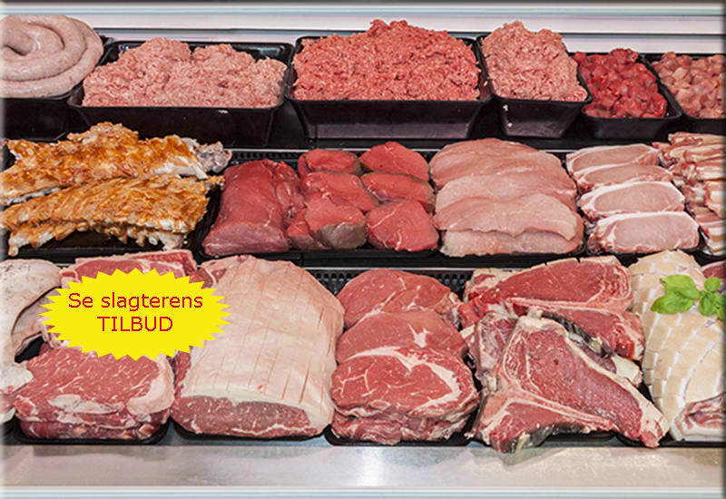 Vi har eget slagteri og slagter grise, kreaturer, lam og geder, - både til videresalg i vores butik og til returslagtninger. Kødet får lov til at hænge og modne færdigt i vores eget kølerum og bliver først solgt, når det har den rette kvalitet.